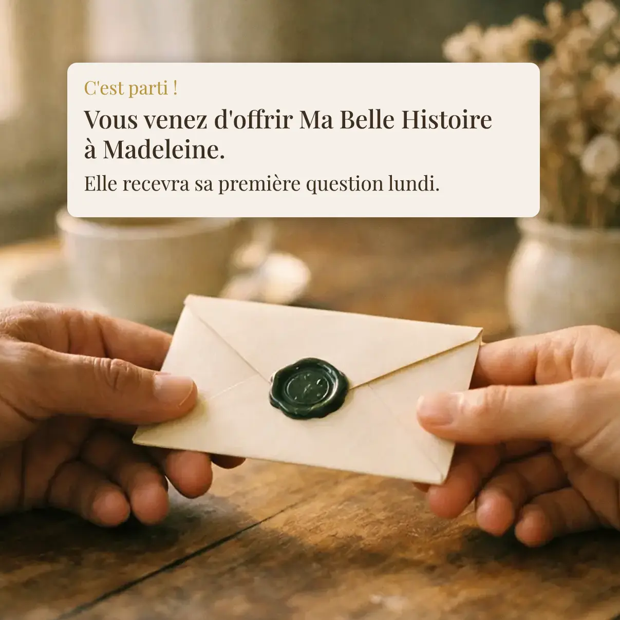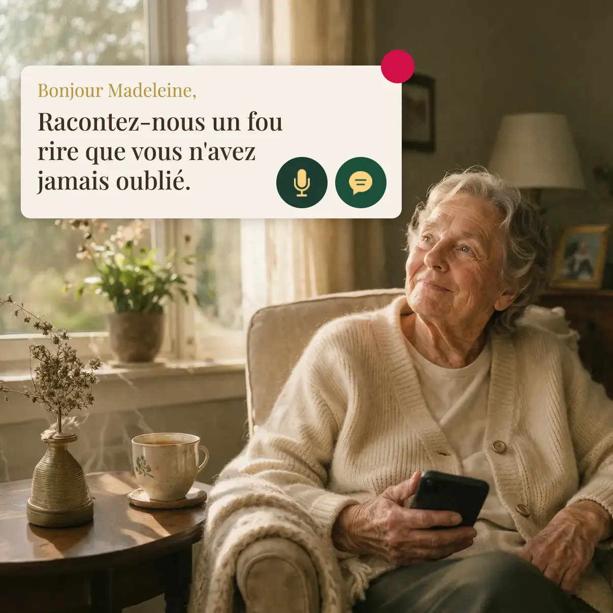 Aucun compte à créer. Aucune application à installer. Votre proche n'a qu'à répondre.