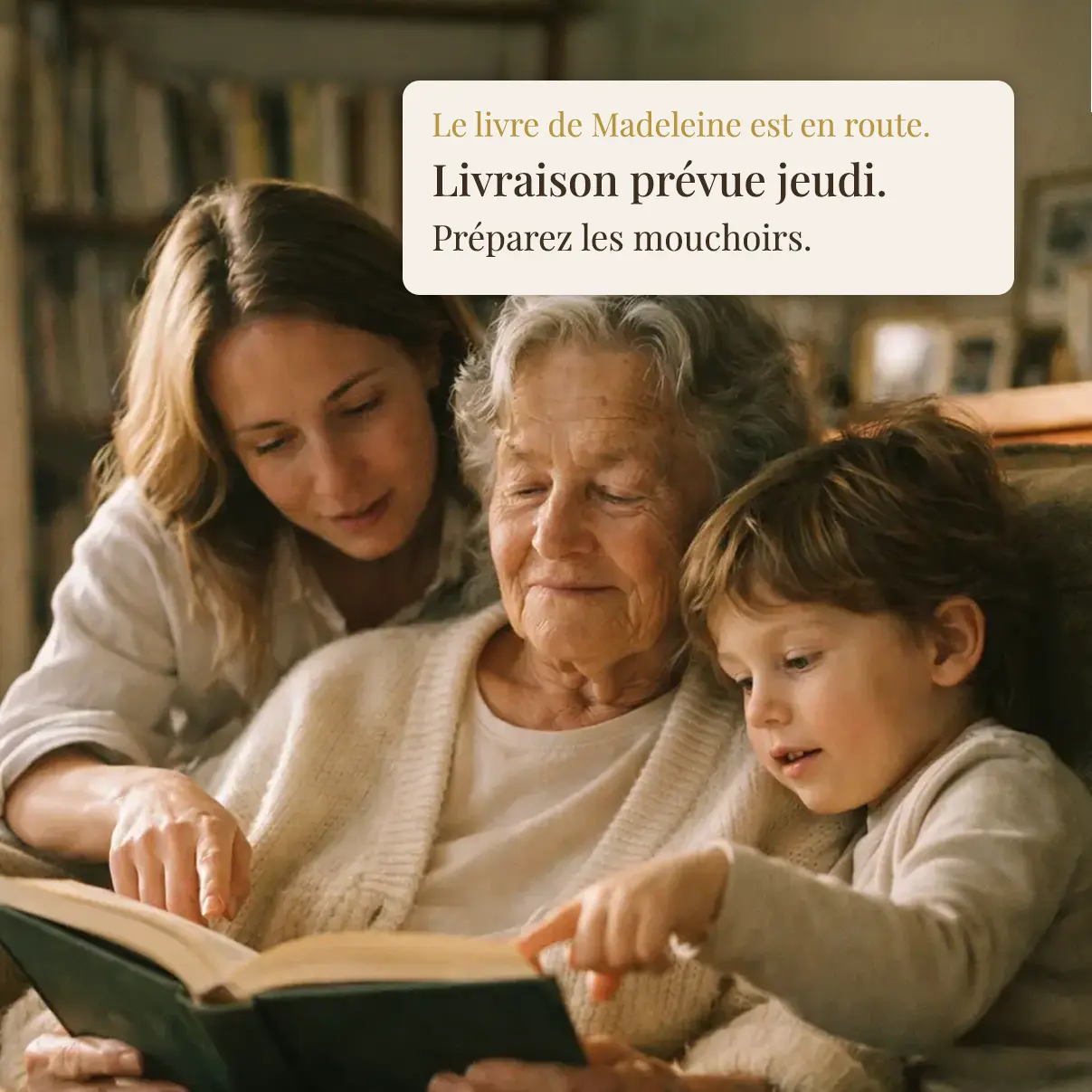 Cadeau offert pour les 70 ans de notre mère. Quand on a ouvert le livre ensemble, on a ri, on a pleuré, on a découvert qui elle était avant d'être notre mère. On n'oubliera jamais ce soir-là.